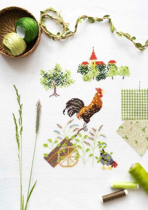 Franse platteland, vastgelegd in prachtige kruissteekpatronen.