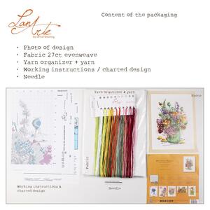Inhoud: 28 count evenweave. Borduurgaren. Naald. Instructies. Telpatroon.