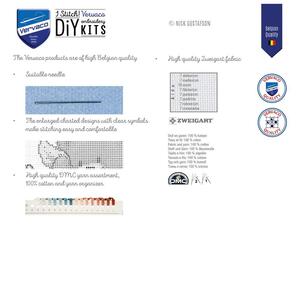 Inhoud: 16 count aida. Borduurgaren. Naald. Instructies. Telpatroon.
