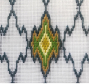 Bargello borduren of Florentijns borduren was in de jaren zeventig van de vorige eeuw razend populair. Door van donker naar licht of licht naar donker te borduren, ontstaat er een prachtig diepte-effect. Naast het kleurgebruik is ook de herhaling van het patroon kenmerkend voor deze techniek.