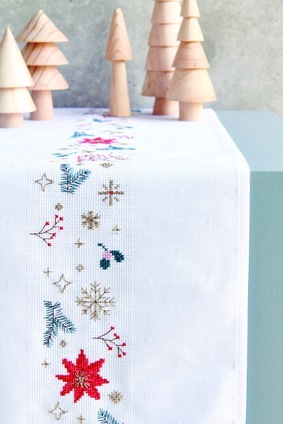 Een van de leukste dingen van Kerst is samen met familie, vrienden en andere dierbaren genieten van het kerstmaal. Een mooi gedekte tafel mag hierbij zeker niet ontbreken. En daarbij komt deze mooie geborduurde tafelloper zeker bij van pas. Wanneer je nu begint met borduren, lukt het je vast hem voor de kerst af te hebben!