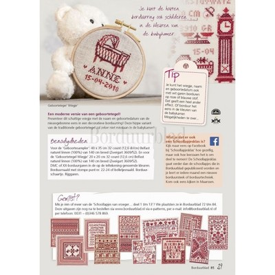 Onderstaande producten zijn net als Digitaal patroon Schoollapjes van vroeger...14 Geboortesampler en Geboortetegel Wiegje te vinden in Borduurblad 85