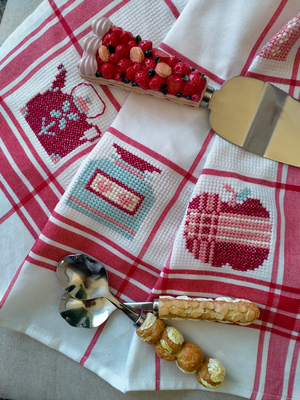 Na de serie met theekopjes, heeft onze Italiaanse ontwerpster Loredana Briozzo een nieuwe serie patronen ontworpen. Ditmaal zijn het patroontjes om te borduren op een theedoek! En wel op een hele leuke roodwit geblokte theedoek met 20 vakjes die je kunt borduren. Voor elk van die vakjes heeft Loredana een klein patroontje in mooie bijpassende kleuren ontworpen! Deze delen we de komende vier uitgaven van Borduurblad met je, te beginnen met de eerste vijf patroontjes.