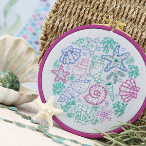 en bewaren. In zachte pasteltinten vormt zich een borduurring vol schelpen en