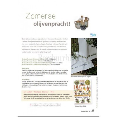 Onderstaande producten zijn net als Digitaal patroon Zomerse olijvenpracht dekservet + kussen + theedoekranden te vinden in Borduurblad 80