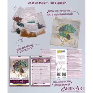 Inhoud: Voorbedrukt canvas. Kralen. Naalden. Instructies.