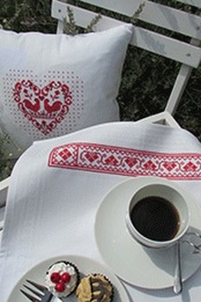 Kussenhoes met ingeweven aida hart van 95 kruisjes breed. Samenstelling: 86% katoen, 10% modal, 4% linnen.