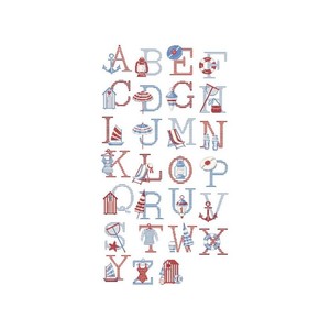 In dit geweldige ABC is er de oceaan en het schuim, de parasols die het zand kleuren en die ligbedden waar we de hele winter op wachten. Boten, ankers, schelpen en vele andere motieven, voor ieder wat wils.
