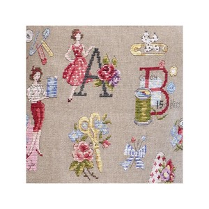 Het is de ABC couture van Parijse chic! Elegante vrouwelijke silhouetten, kleine naaiaccessoires - scharen, klossen, knopen, strijkijzer, naaimachines - met de een nog charmanter dan de andere, kun je duizend-en-een accessoires personaliseren.
