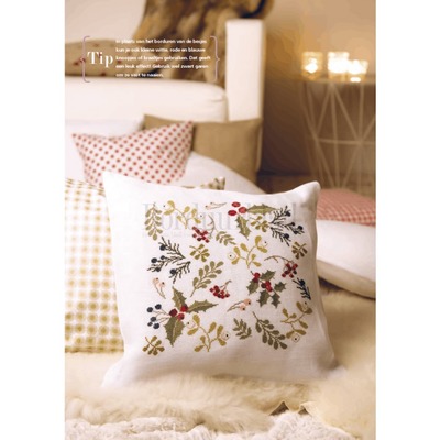 Digitaal patroon Kerstkussen met hulst, maretak en besjes