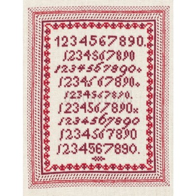 Wit dekservet met ingeweven aida-zone in het midden om te borduren.