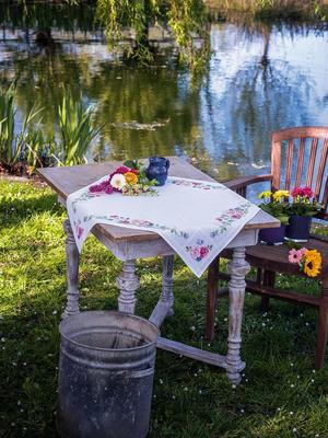 Steken: kruissteek, spansteek. Borduurformaat: 80 x 80 cm.