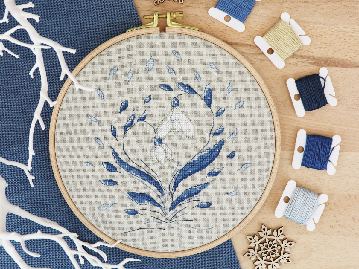 In Winterly Snowdrops van Zweigart zijn sierlijke sneeuwklokjes