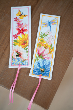 Borduurpakket Vervaco set boekenleggers ‘Kleurige bloemen’