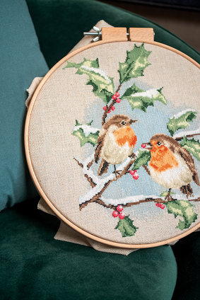 Borduurpakket Vervaco 'Winter roodborstjes'