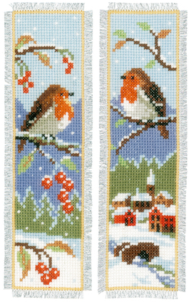 Borduurpakket Vervaco set van 2 Boekenleggers ‘Roodborstje’