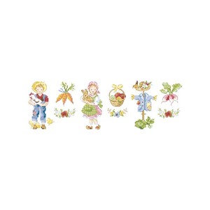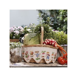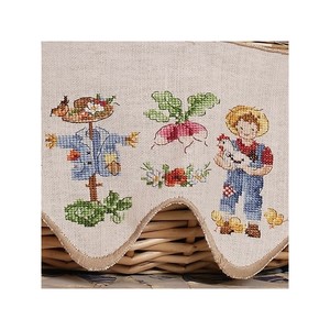 Hier is een klein mandje waar veel mensen jaloers op zullen zijn. Geborduurd op een geschulpte linnen band, zijn deze kleine boeren net zo schattig als de kleine groenten die zij verbouwen. En als je echt bang bent dat je mandje wordt gestolen, leg dan je geborduurde band op je favoriete plank!