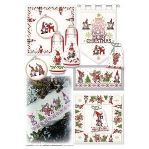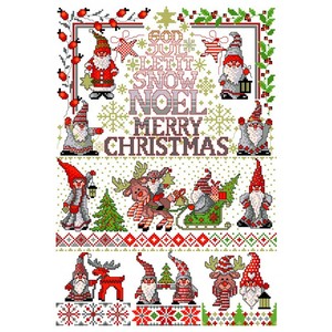 Patroonvel van A3 formaat incl. garenlijst met diverse motiefjes om te borduren: Kerst, kerstmannetjes, kersttakken, kerstbomen, rendieren, randjes.