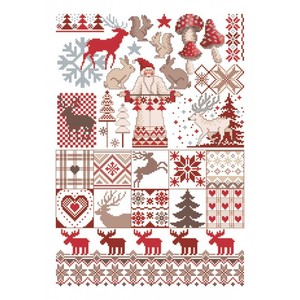 Patroonvel van A3 formaat incl. garenlijst met diverse motiefjes om te borduren: winter, landschapjes, schaatsen, randjes, huisjes, vogels.