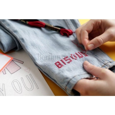 Knip het borduurpatroon uit en plak het op je gewenste ondergrond. Borduur vervolg over het MAGIC PAPER. Is je borduurwerk klaar? Leg het dan 60 seconden in een kommetje water of spoel het uit onder de kraan. Het MAGIC PAPER verdwijnt dan. Laat het borduurwerk drogen en je kledingstuk is gelijk klaar om gedragen te worden.