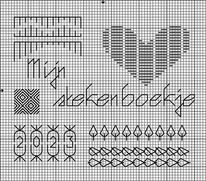 We zijn zover dat we de voorpagina van het boekje kunnen borduren. Ook gaan we het boekje in elkaar zetten. In Borduurblad nummer 114 werd de opzet van het boekje behandeld. Daar gaan we nu gebruik van maken om van het geheel ook een mooi boekje te maken. Allereerst maken we de voorkant van het boekje. Nu je zelf geleerd hebt ontwerpjes met steken te maken, kun je zelf een voorkant van je boekje ontwerpen en uitvoeren. Maar je kunt natuurlijk ook het patroon op pagina 12 gebruiken om de voorkant van het boekje te maken.