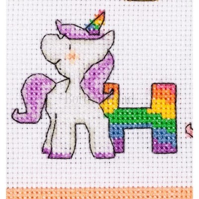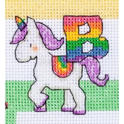 BB85-PATROON EEN EENHOORN-ALFABET IN REGENBOOGKLEURTJES