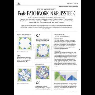 Borduurblad - Patroon Mysterie borduurproject PinK: Patchwork in Kruissteek
