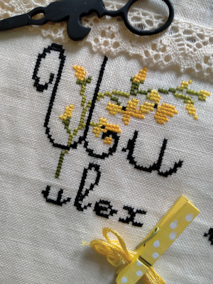 Borduurformaat: 52 x 47 kruisjes (U), 58 x 53 kruisjes (V), 48 x 77 kruisjes (W)