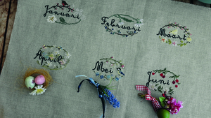 een stuk stof van 45 x 50 cm nodig. De maanden zullen in 4 rijen van 3 maanden worden geborduurd.