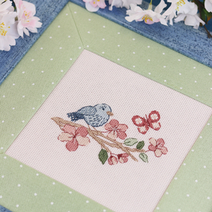 Borduurblad - Patroon Vogeltje op tak met voorjaarsbloesem