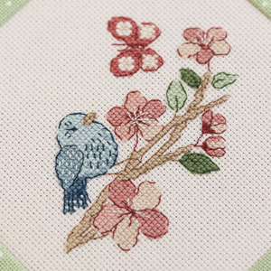 Onderstaande producten zijn net als Patroon Vogeltje op tak met voorjaarsbloesem te vinden in Borduurblad Borduurblad 127