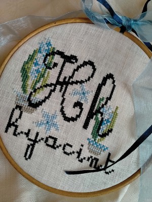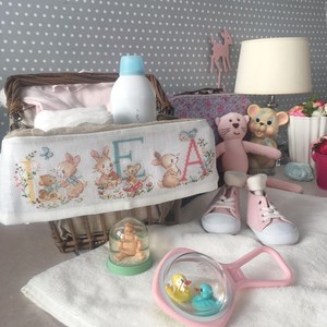 Zoek met een centimeter het midden van het aida op en begin vanuit dit midden met het borduren van het patroon. Zo kom je altijd goed uit. Borduur in kruissteek met twee draden en in stiksteek met één draad over één weefselbosje volgens het telpatroon op het patronenblad.