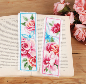 Borduurblad - Set met 2 Boekenlegger Roosjes